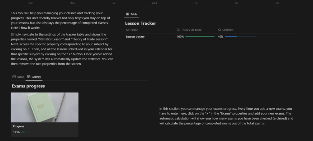 Optimize your exam and lesson management with this simple Notion template designed to empower students. Keep track of lesson schedules, exam dates, and study materials. Easily organize your coursework, stay on top of deadlines, and streamline your study efforts with this user-friendly template.